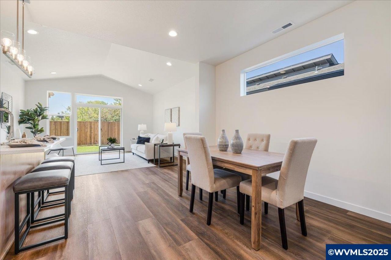 Modern craftsman townhome offering a main-level primary suite, 3 bedrooms, 2.5 baths, and a 2-car garage. Vaulted entry leads to a 16x15 great room and 12x11 dining area. Island kitchen features shaker cabinets, quartz counters, and a side-by-side refrigerator. Upstairs includes two bedrooms, a full bath, and a loft overlooking the main level. Oversized laundry off the garage with front-load washer/dryer and window treatments throughout. Enjoy a fenced & landscaped yard, territorial views! No HOA. MOVE IN READY! Seller offering $25K!!
